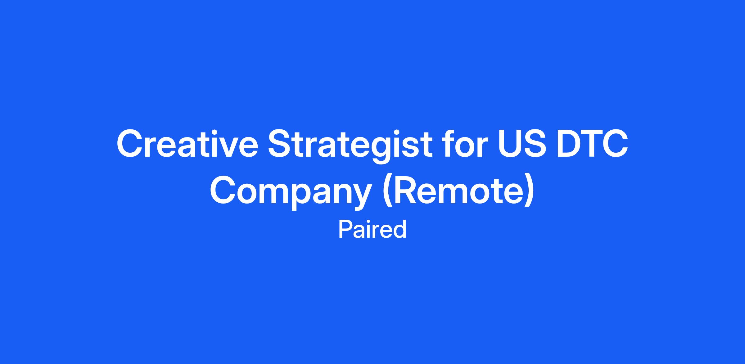 Requirements- Proven experience as a Creative Strategist, Creative Director, or Performance Creative Lead for DTC brands.