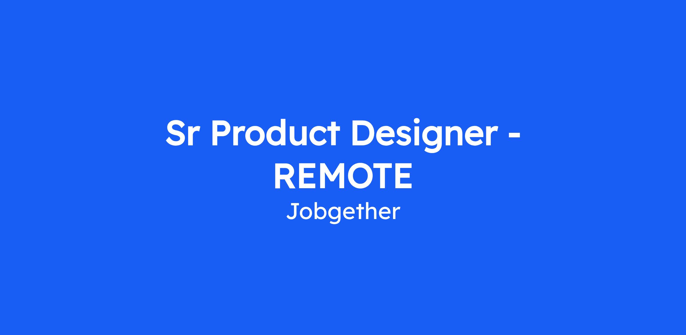 Sr Product Designer - REMOTE